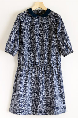 清潔感のあるコットンの水玉プリントを使ったカシュクールワンピースです。昔懐かしいフレンチカジュアルを思う起こさせる不思議な雰囲気を持つフリル使いがポイントの水玉ワンピースです。もちろん無地で作っても清楚な印象のワンピースが出来あがりそうでいいですね。